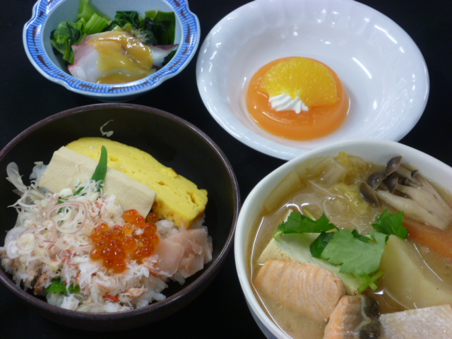 今週は鳥取の特産品、蟹としらすを使った散らし寿司です
