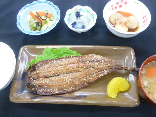 本日は愛媛産黒鯛の塩焼きに青豆ごはんを付けました。