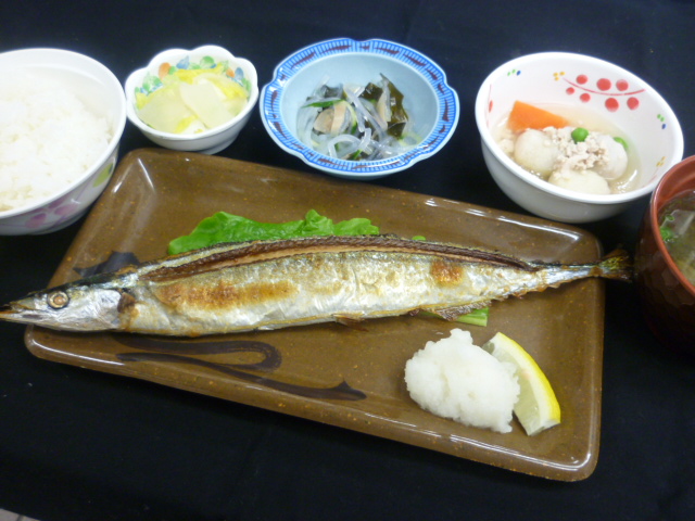 旬の味覚、北海道産の新秋刀魚を塩焼きにしました