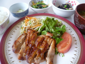 ・鶏のキジ焼きとスパゲティサラダ