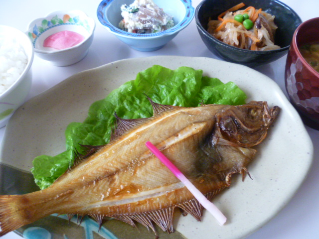 本日はエテカレイの干物は身は淡白なのに旨味がギュッと濃縮されております。