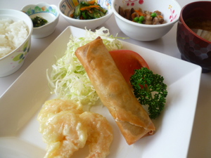 本日の夕食はパリパリ、ジューシーな具沢山の春巻きとプリプリ海老のマヨネーズソースです。