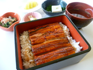 本日の夕食は土用の二の丑で「鰻の錦糸丼 薬味のせ」です。