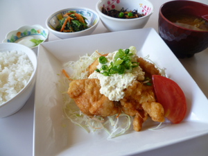 あっさりとした豆腐の和風タルタルソースと一緒に