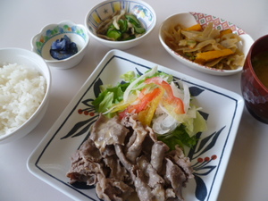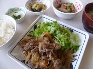 本日の夕食は静岡産の柔らかい牛モモ肉を甘辛いタレで野菜と一緒に炒めました。