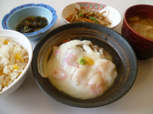 本日の夕食は柔らかい若鶏とふっくらとした豆腐の揚げ出しです。