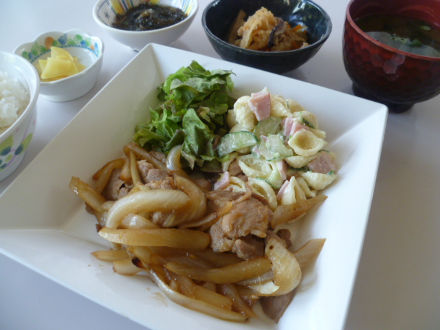 ・遠州豚の生姜焼きとシェルマカロニサラダ