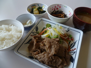 本日のメニューは遠州産の豚肉を玉葱と一緒に炒め