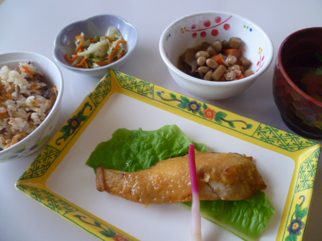 本日の夕食は旬の秋鰆にさわやかな風味の柚子味噌を塗って香ばしく焼き上げました。