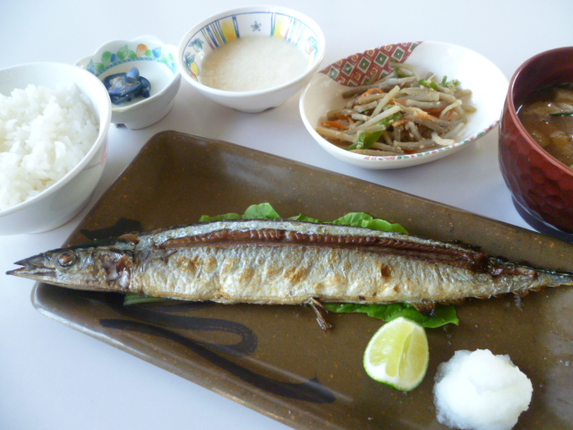 本日の夕食は北海道産の旬の秋刀魚の塩焼きです。