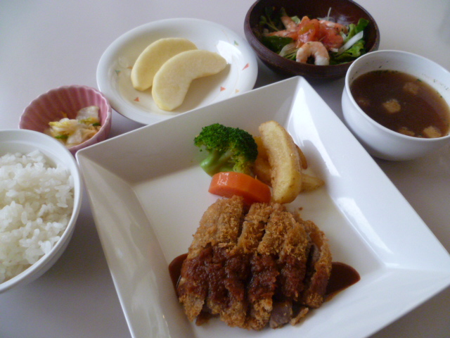本日の夕食は大ぶりでプリプリな食感の海老フライです。