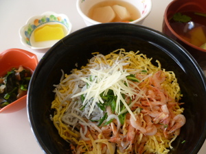本日の昼食は由比産の「桜海老」と舞阪産の「しらす」の丼です。