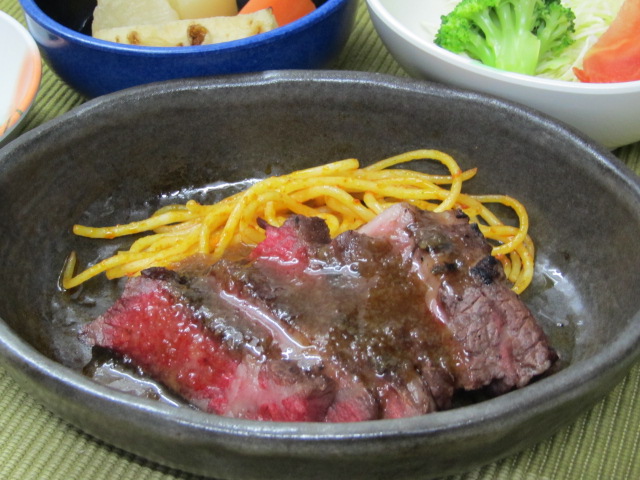 柔らかく仕上げた牛肉を、グラタン皿で熱々に提供しました。