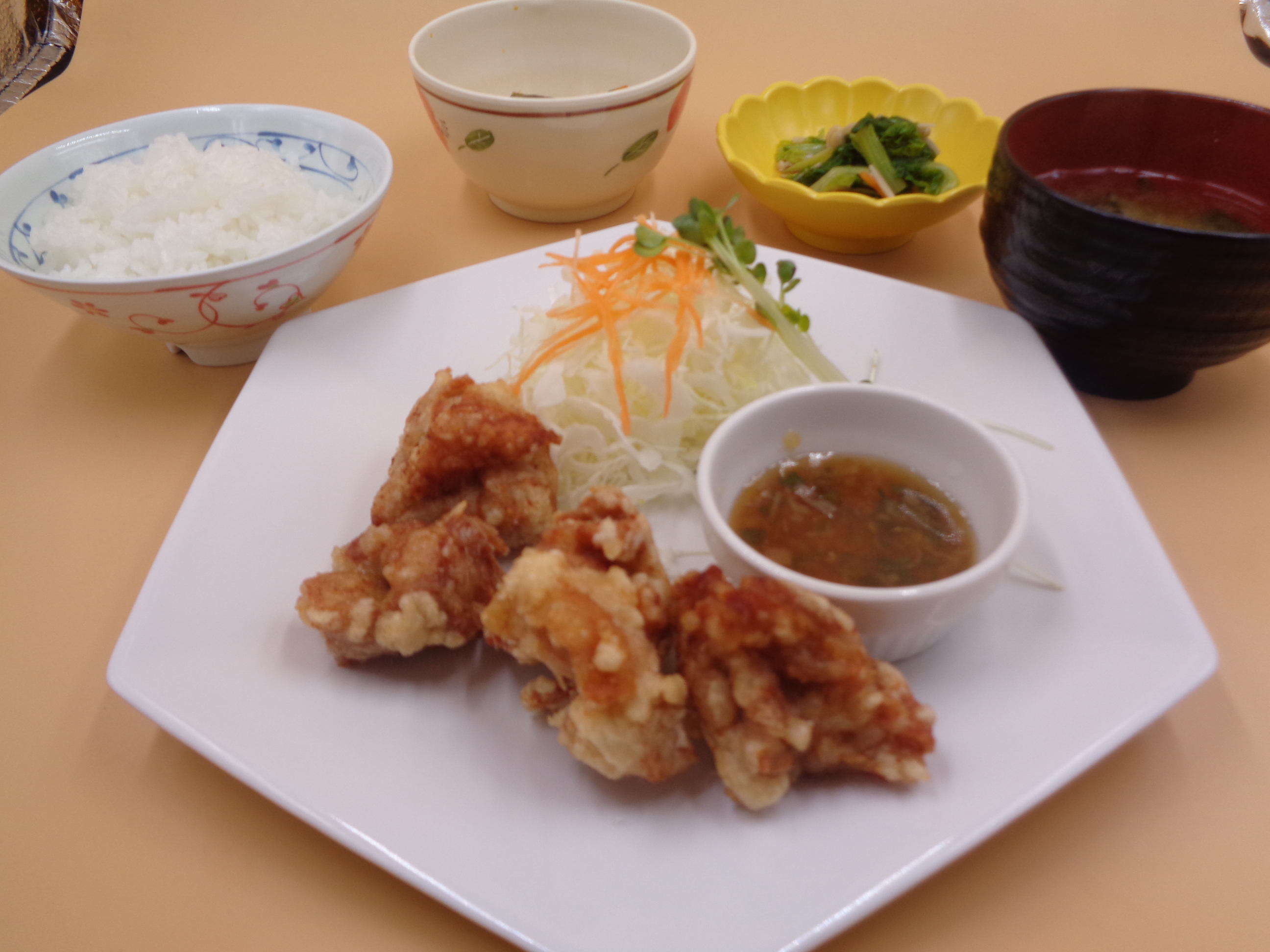 醤油ベースのたれに漬けこんだアンコウをカラッと揚げました。
