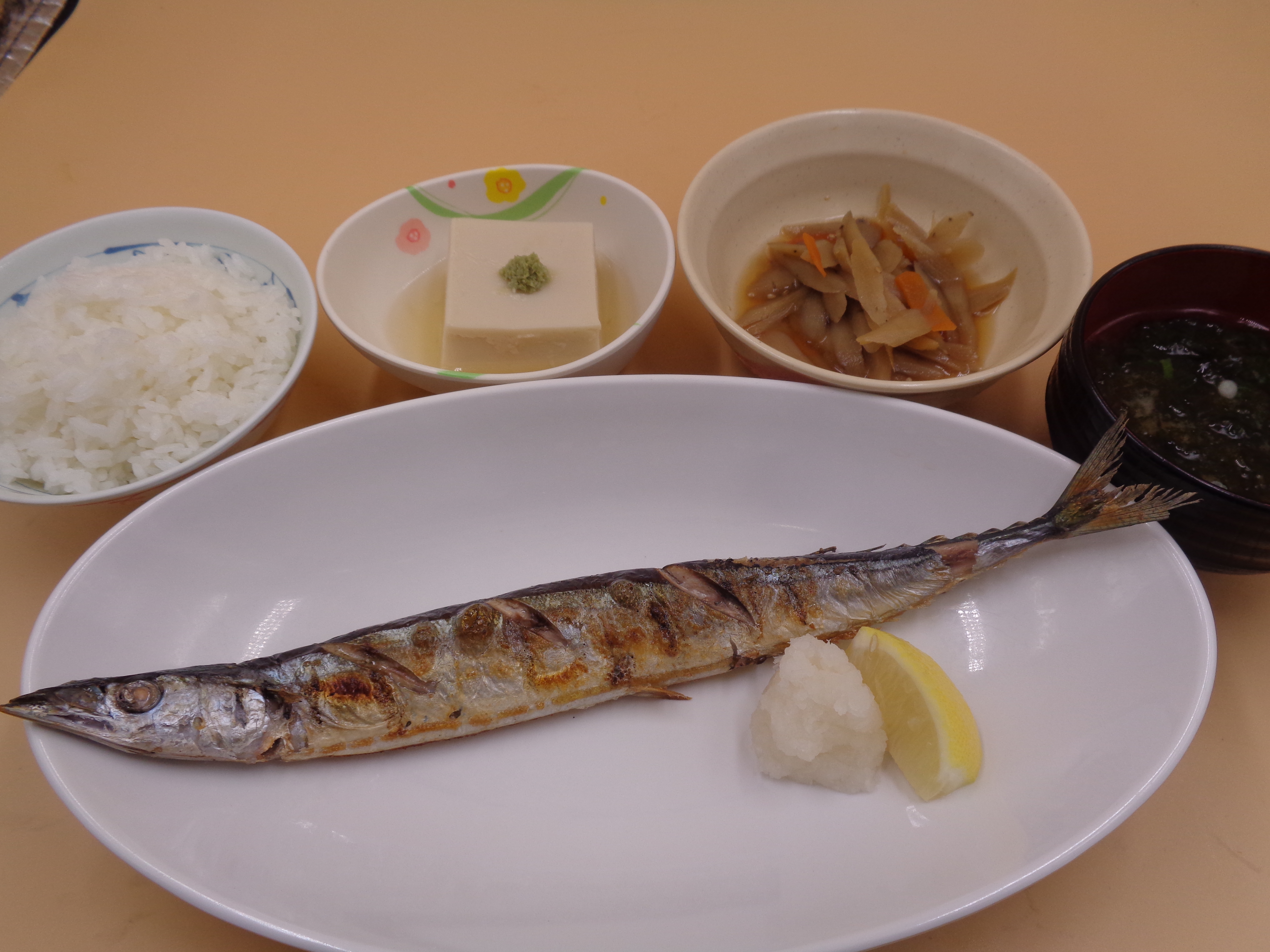 本日は秋の魚の王様、秋刀魚の塩焼きを提供いたしました
