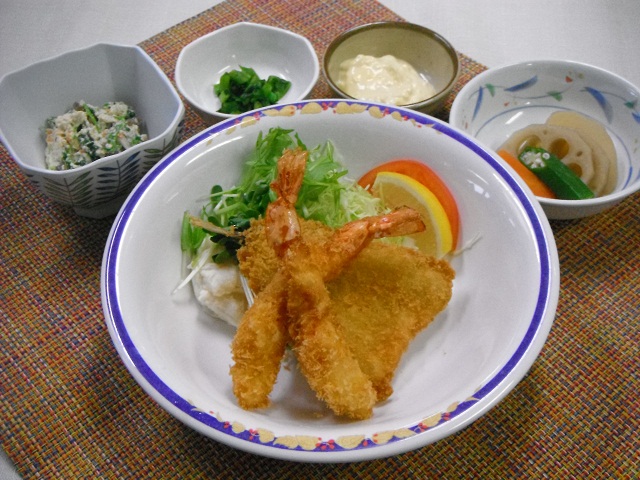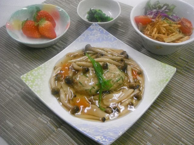 昼食に、肉団子の甘酢あんと春雨サラダなど