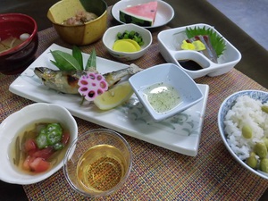 月に一度の特別メニューで、旬の食材を集めたミニ会席風を