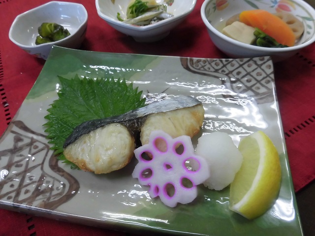 本日は西京味噌に漬け込んで香ばしく焼き上げたむっちりとした身の黒ムツを召し上がっていただきました。