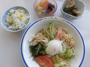 暑い日にぴったりな滑らかなのど越しの秋田県の名産冷やし稲庭うどんを召し上がっていただきました