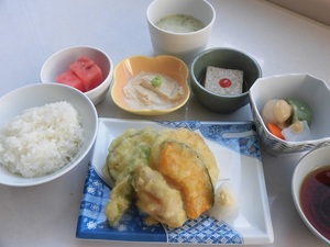 茄子、南瓜、オクラ、ミニトマトの4種の夏野菜天を召し上がっていただきました