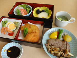毎月一日は「幕の内弁当」です。季節の食材を彩り良く盛り付けたお弁当になっています。