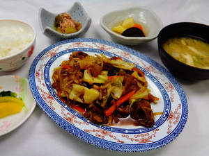 本日は、鶏の生姜焼きです。醤油の香りと生姜の香りで食欲が湧きます。