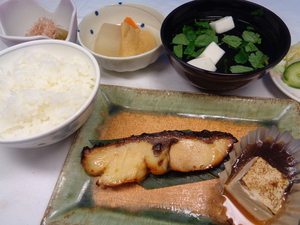 西京味噌の風味を一晩漬けて浸み込ませた黒ムツです。