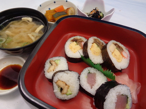 本日は、土用丑メニューと言うことで、鰻重をご用意いたしました。鰻巻きと鰻の肝を使用した肝吸いも一緒に。
