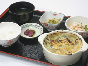 本日はかきとほうれん草のグラタンです。