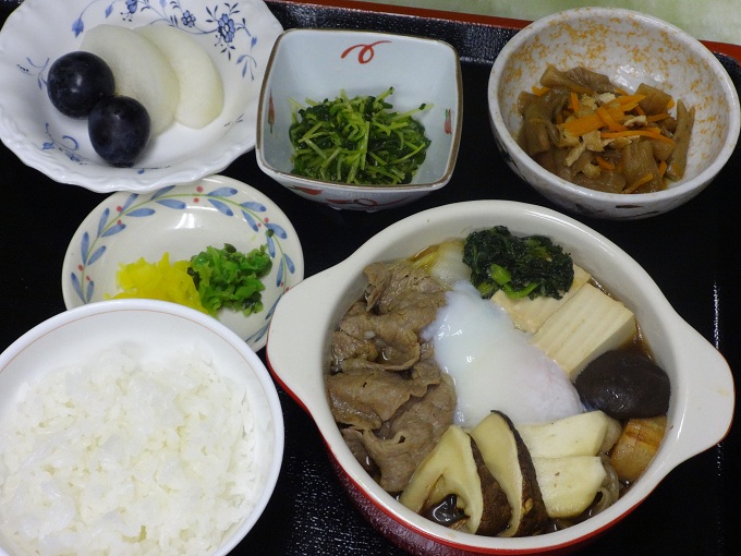 本日の夕食は和牛と焼き豆腐のすき焼き風です。