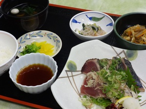 本日の夕食は紀州産戻りかつおのたたき造りです。