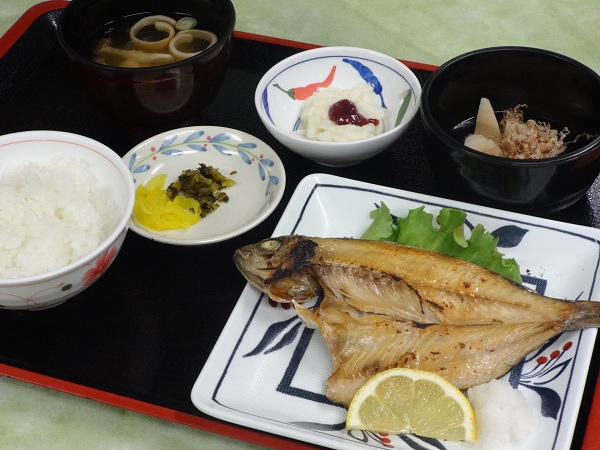 本日の夕食は、鳥取県境港産とび魚の塩焼です。