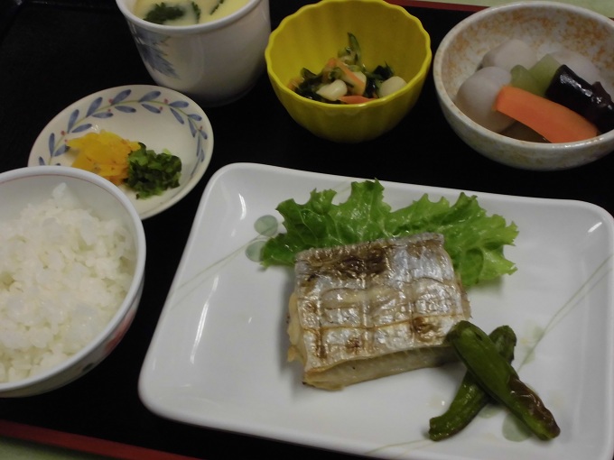 本日の夕食は鹿児島県産ぶりの塩焼きです。
