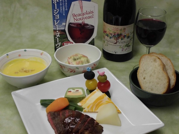 本日の夕食は、ヴォージョレ・ヌーボ特別メニューです。