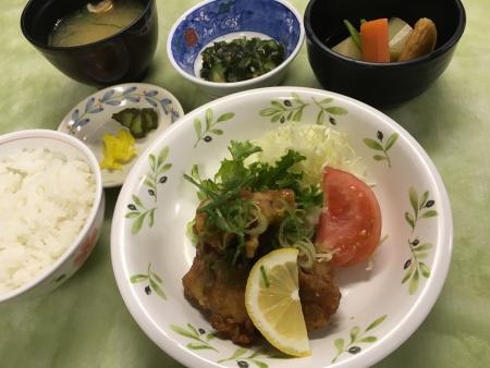 本日の昼食は、山菜かやくご飯と明石焼き風オムレツです。
