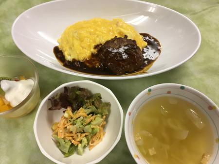 本日の昼食は、ハンバーグオムライスのデミソースかけです。
