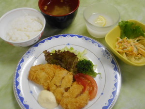 本日の夕食は、薩摩茶美豚のヘレカツです。