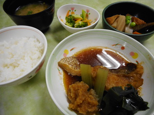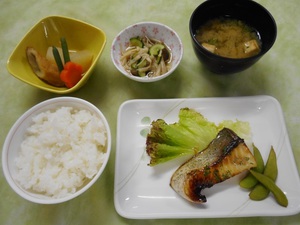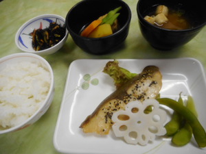 本日の夕食はカンパチの木の芽焼きです。