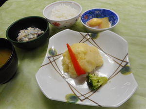 本日の夕食は、さわらの信州とろろ蒸しです。