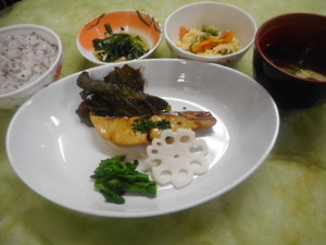 本日の夕食は、鮭の菜種焼きです。