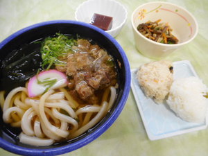 本日の昼食は、神戸名物のぼっかけうどんです。