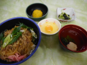 本日の昼食は、牛丼の生卵添えです。