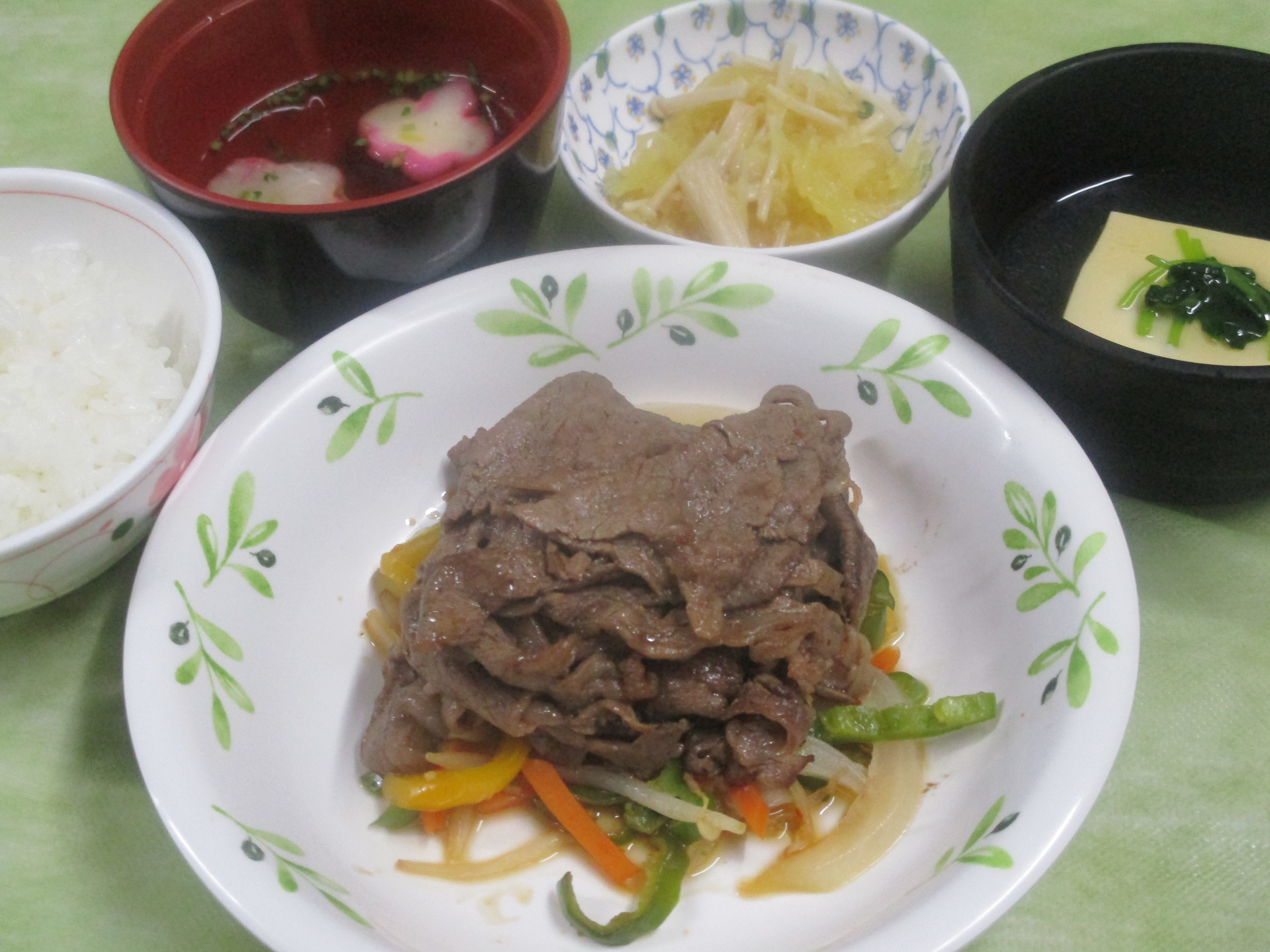 本日の夕食は牛肉とエリンギとアスパラのオイスター炒めです。