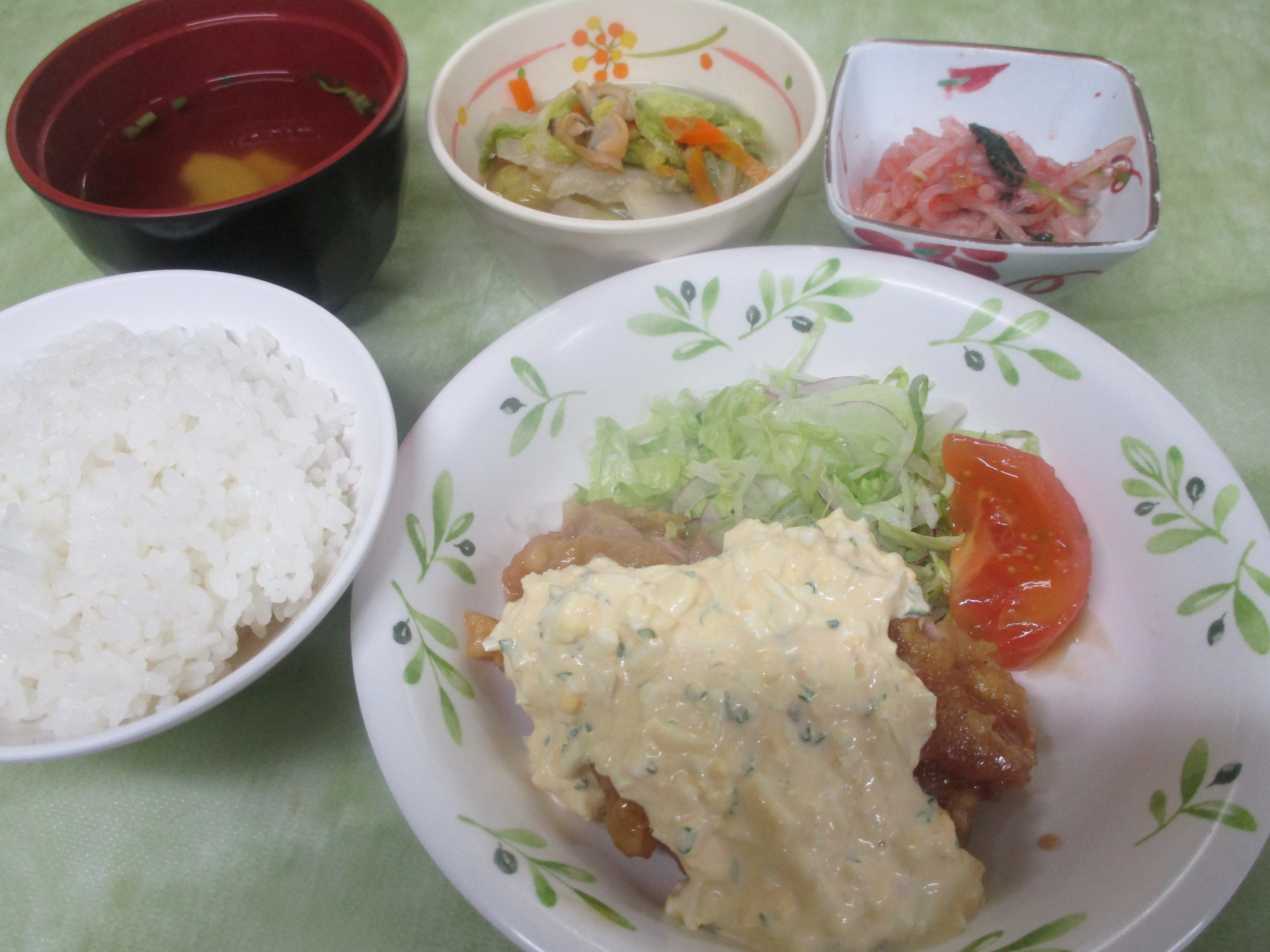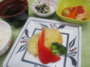 本日の昼食は鰆の唐揚げ野菜あんかけです。