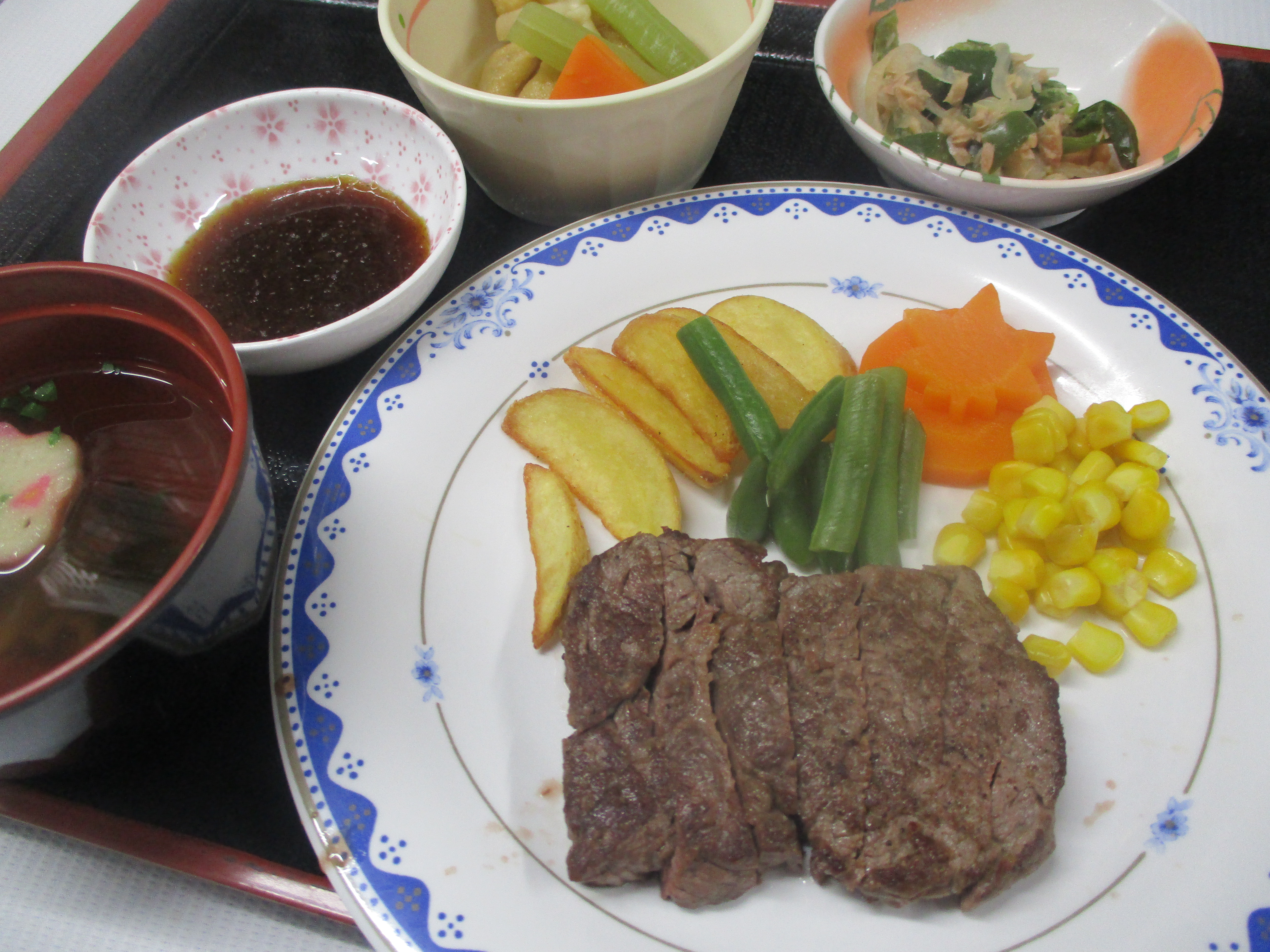 本日の特別食は国産の牛ヘレ肉をステーキにして召しあがって頂きました。