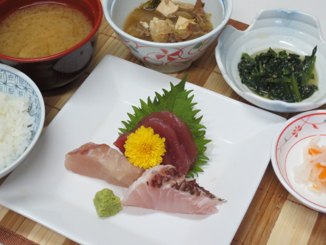 ・焼魚 卵焼き 煮物 胡麻和え 八幡巻 胡麻豆腐しそ揚げ