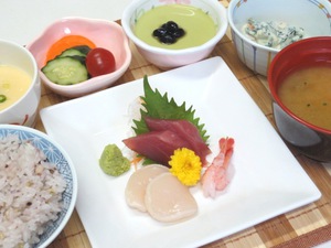 本日の夕食は母の日にちなんで体に優しい素材を集め定食に致しました。