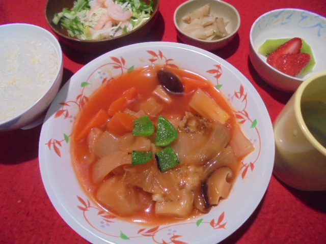 具沢山の酢豚に黒酢を入れ仕上げました。
