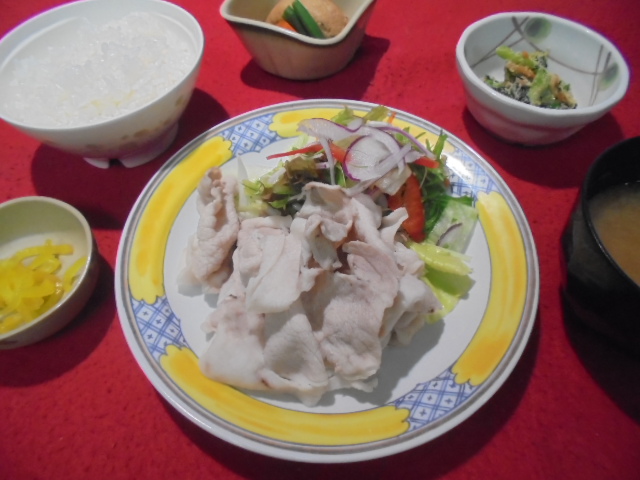 もち豚のロース肉をしゃぶしゃぶにして、サラダ仕立てにしました。