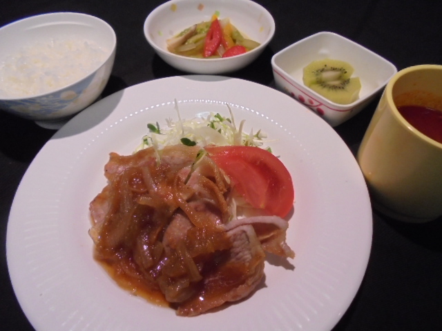 本日は特別食といたしまして、牛ロースのステーキを赤ワインベースのソースでお召し上がりいただきます。